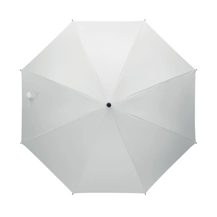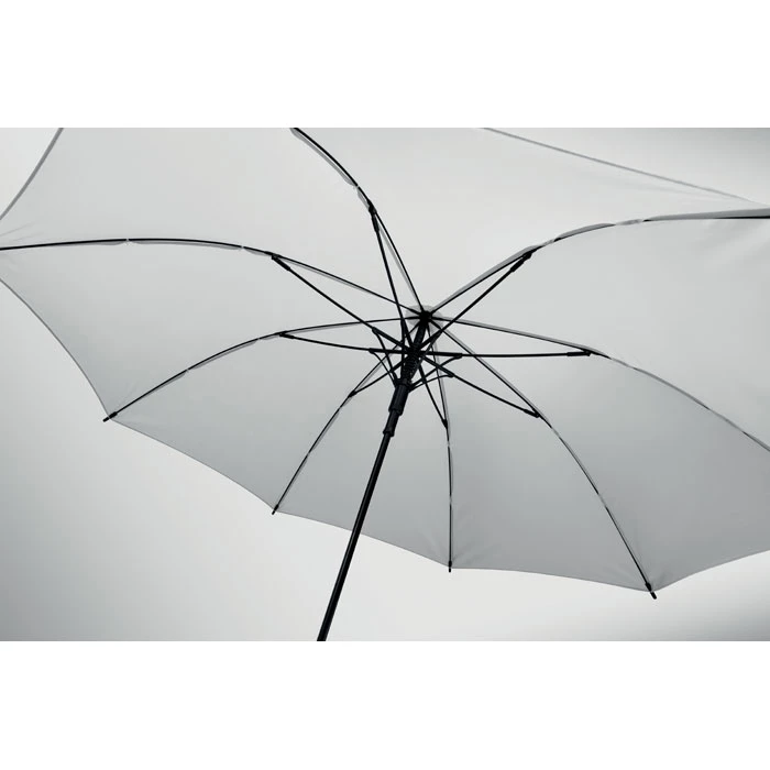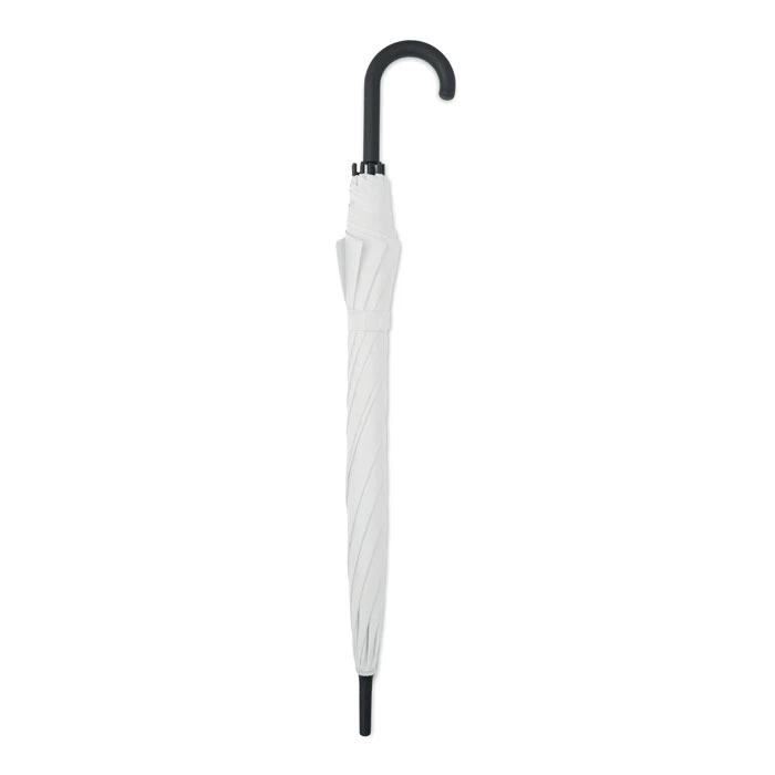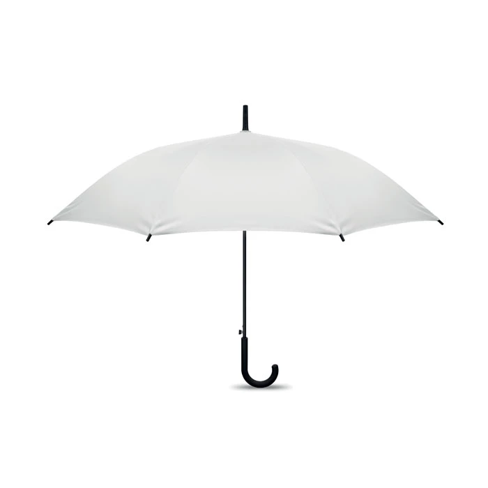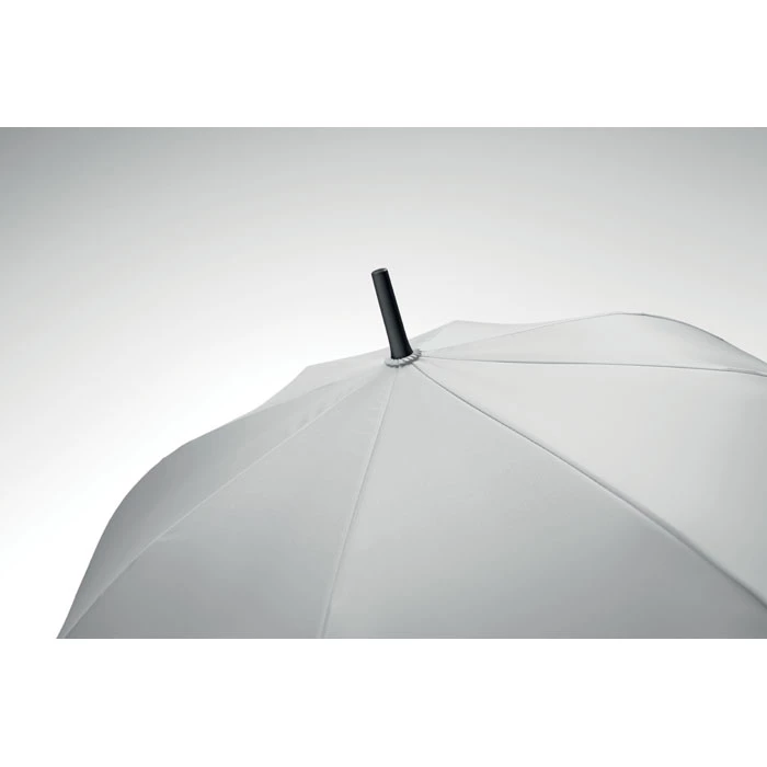 Wiatroodporny parasol o przekątnej 23 cali z automatycznym otwieraniem, stelażem z włókna szklanego i panelami z tkaniny pongee 190T. Plastikowe końcówki i górna część. Gumowany, zakrzywiony uchwyt z tworzywa PP. Ręczne zamknięcie.