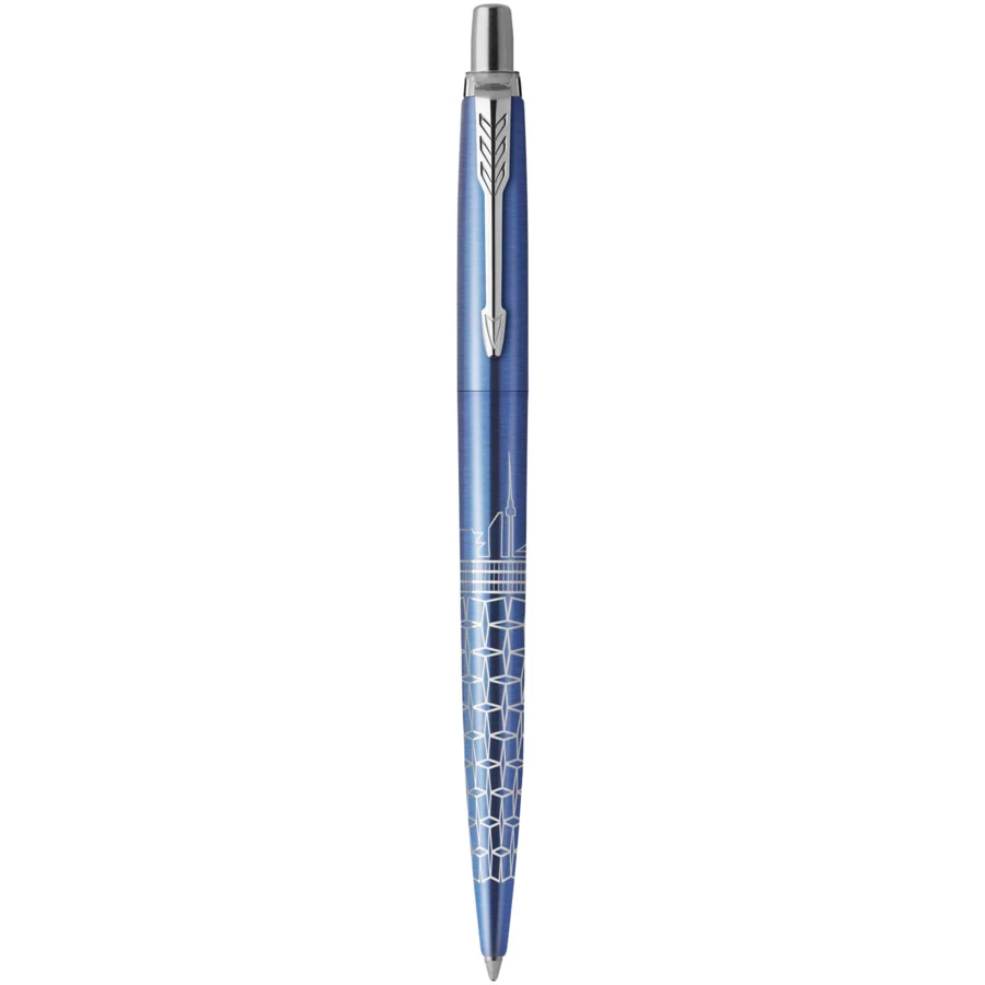 Parker Jotter SE Global Icons długopis z niebieskim wkładem, dostarczany w pudełku upominkowym. Parker Jotter SE Global Icons to seria długopisów firmy Parker, znanej marki z długą historią produkcji wysokiej jakości artykułów piśmienniczych. „SE” oznacza „specjalną edycję”, a motyw „Ikony globalne” sugeruje motyw projekt, który celebruje kultowe elementy z całego świata. Żywotność: 2000 metrów.