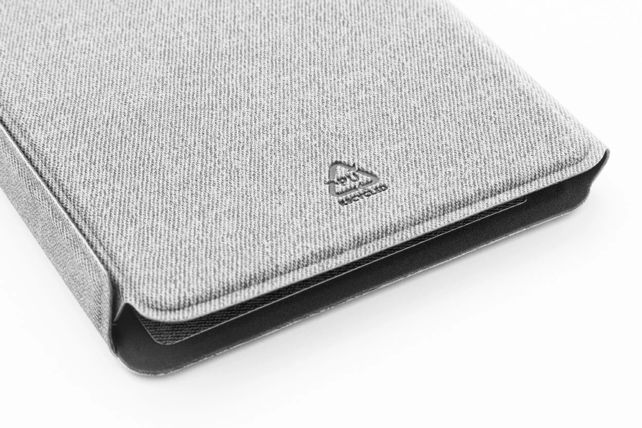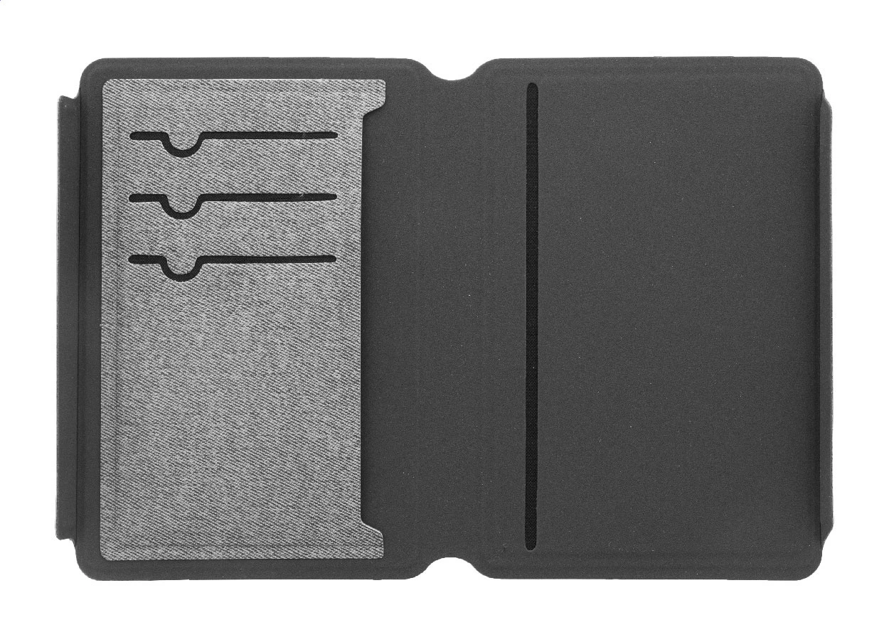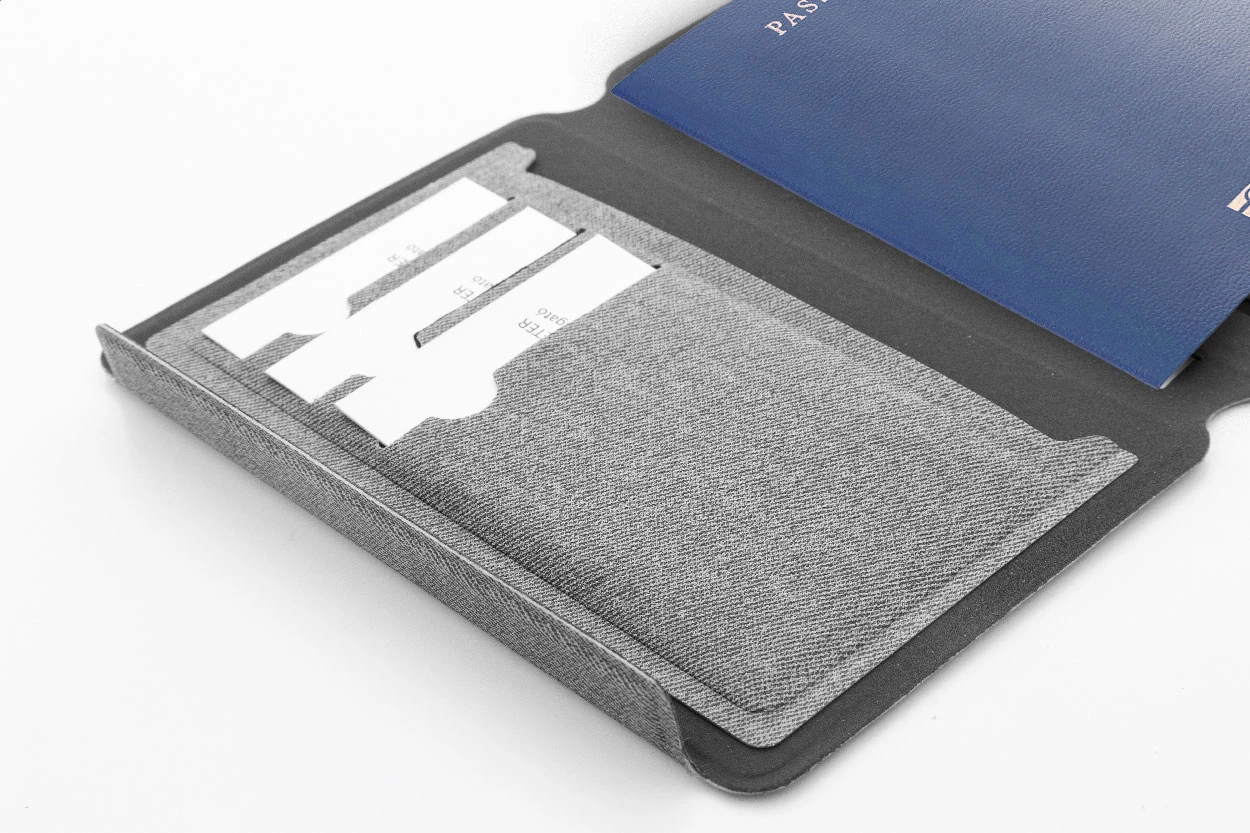 Etui na paszport wykonane z recyklingowanej skóry PU z wewnętrznymi kieszonkami na karty i magnetycznym zapięciem.
