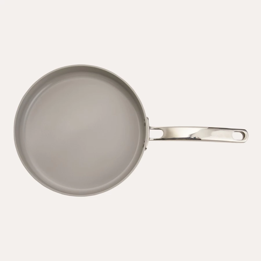 Patelnia, wykonana z aluminium z recyklingu z certyfikatem RCS, uchwyt ze stali nierdzewnej, kompatybilna ze wszystkimi typami kuchenek oraz piekarnikiem (temp. Max do 250°C), całkowita zawartość materiałów z recyklingu obliczona na podstawie wagi całkowitej produktu: 69%