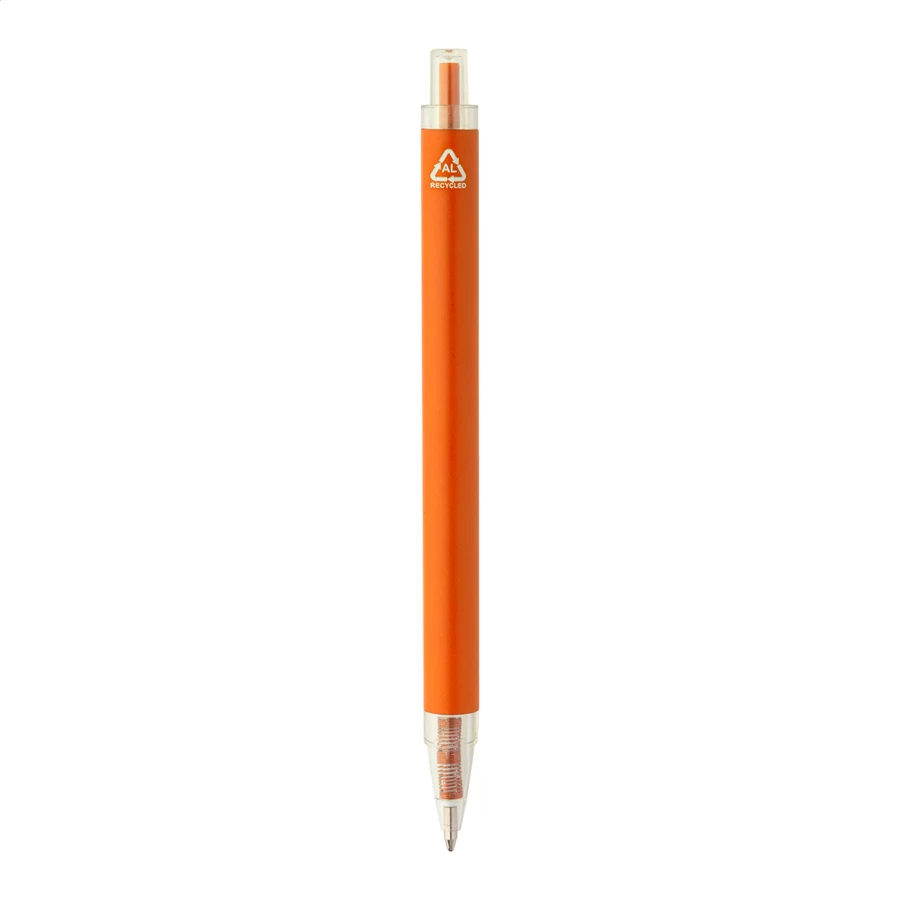 Długopis z recyklingowanego aluminium z matowym wykończeniem i przezroczystymi elementami z RPET. Z niebieskim wkładem.
