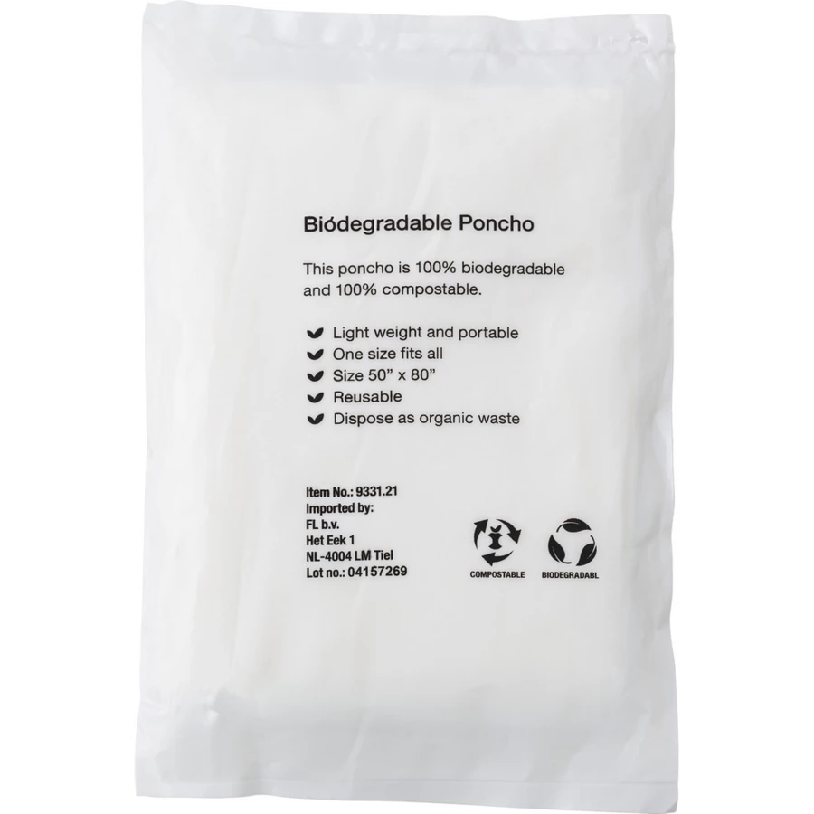 Składana peleryna z kapturem w przezroczystym opakowaniu, wykonana z kompostowalnego PLA