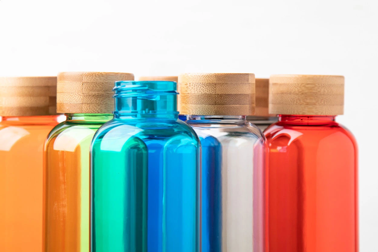 Butelka RPET z bambusową pokrywką, 500 ml. Nie zawiera BPA. Nie nadaje się do napojów gazowanych.