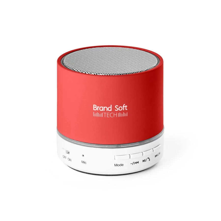 Głośnik z mikrofonem wykonany z ABS z gumowym wykończeniem. Transmisja danych BT i czytnik kart typu TF. Moc 3W/4Ω. Czas pracy baterii do 2 godzin. Kabel USB do ładowania w zestawie. Funkcje obejmują odbieranie połączeń, kontrolę głośności i połączenie z listą odtwarzania na urządzeniu mobilnym. Zawiera kabel do ładowania USB. ø59 x 55 mm