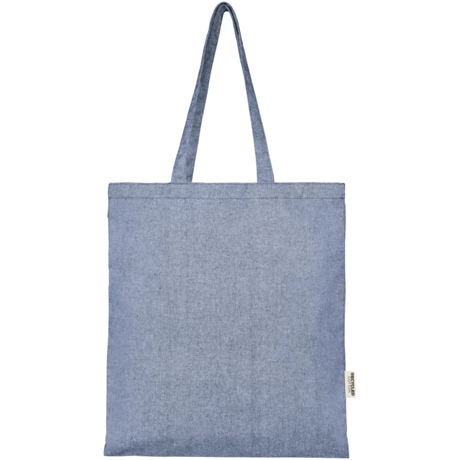 Torba na zakupy wykonana z mieszanki bawełny i poliestru pochodzących z recyklingu o gramaturze 150 g/m². Torbę można łatwo złożyć, aby zmieściła się w niewielkiej przestrzeni i jest idealnym towarzyszem podczas różnych czynności, takich jak zakupy spożywcze, jednodniowe wycieczki lub projekty rzemieślnicze. Bawełna poddana recyklingowi pochodzi z tzw. wstępnych odpadów konsumpcyjnych wytwarzanych przez zakłady włókiennicze w trakcie procesu cięcia. Podobne kolory są mieszane ze sobą, więc nie jest wymagane dodatkowe barwienie. Ze względu na charakter bawełny pochodzącej z recyklingu mogą występować niewielkie różnice w kolorze. Dodaje to bardziej autentycznego wyglądu. Do każdej torby dołączony jest również znacznik Aware™. Ta innowacyjna funkcja pozwala użytkownikom prześledzić za pomocą kodu QR pochodzenie produktu i pokonaną przez niego drogę, zwiększając przejrzystość łańcucha dostaw i wspierając silniejszy związek między produktem a jego procesem produkcyjnym. Wytrzymałość do 5 kg. Długość uchwytu: 31 cm.