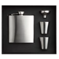 Zestaw: metalowa piersiówka o pojemności 175 ml z 2 kieliszkami i lejkiem.