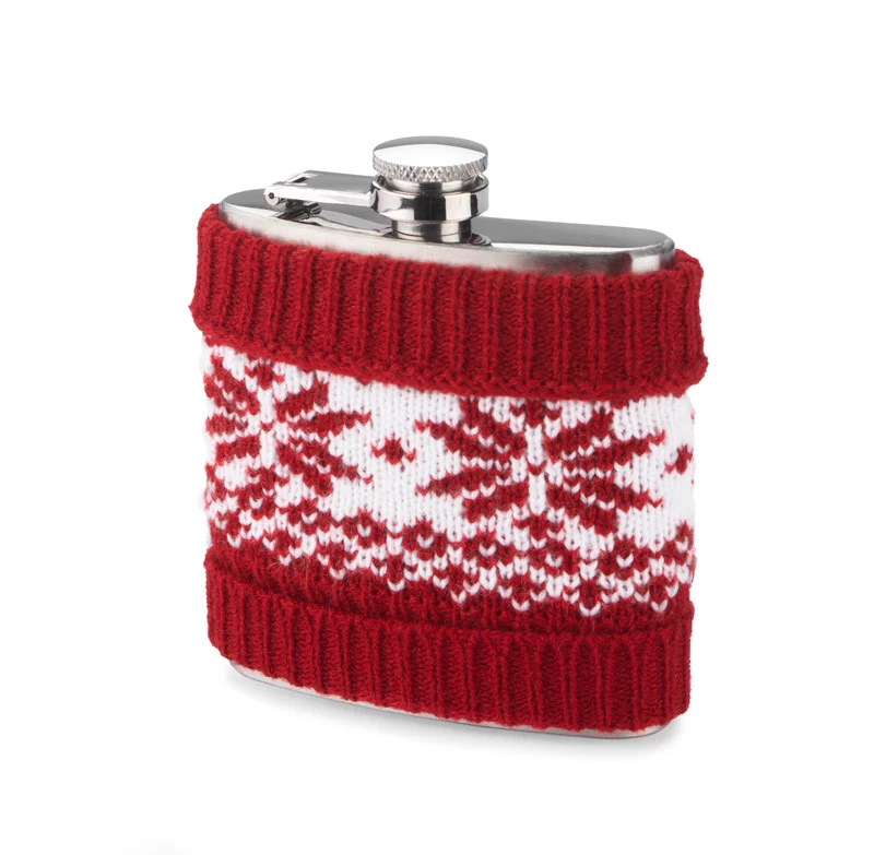 Piersiówka WARM ze stali nierdzewnej o pojemności 200 ml z bezpiecznym zamknięciem. Piersiówka ubrana w sweterek z zimowym wzorem. Doskonały pomysł na upominek.