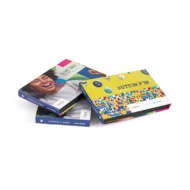 Wzornik usług Pin & Doming, wykonany z kartonu z plastikową powłoką, zamykany na magnes. Wnętrze jest podzielone na 2 części, które zawierają różne modele pinów (okrągłe i prostokątne) oraz badge i breloki do kluczy o różnych kształtach, znakowane domingiem w żywych kolorach. Wzornik jest lekki, a wnętrze z pianki zawiera odpowiednie formy do przechowywania różnych niestandardowych wzorów. 305 x 230 x 25 mm