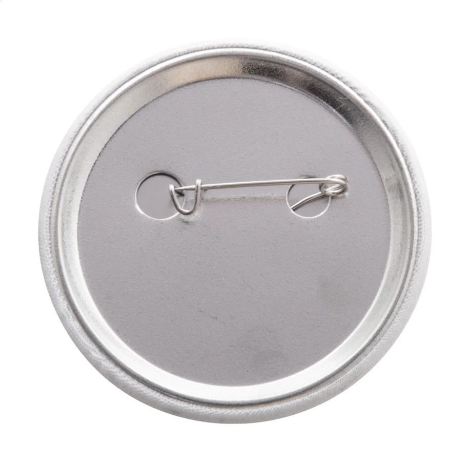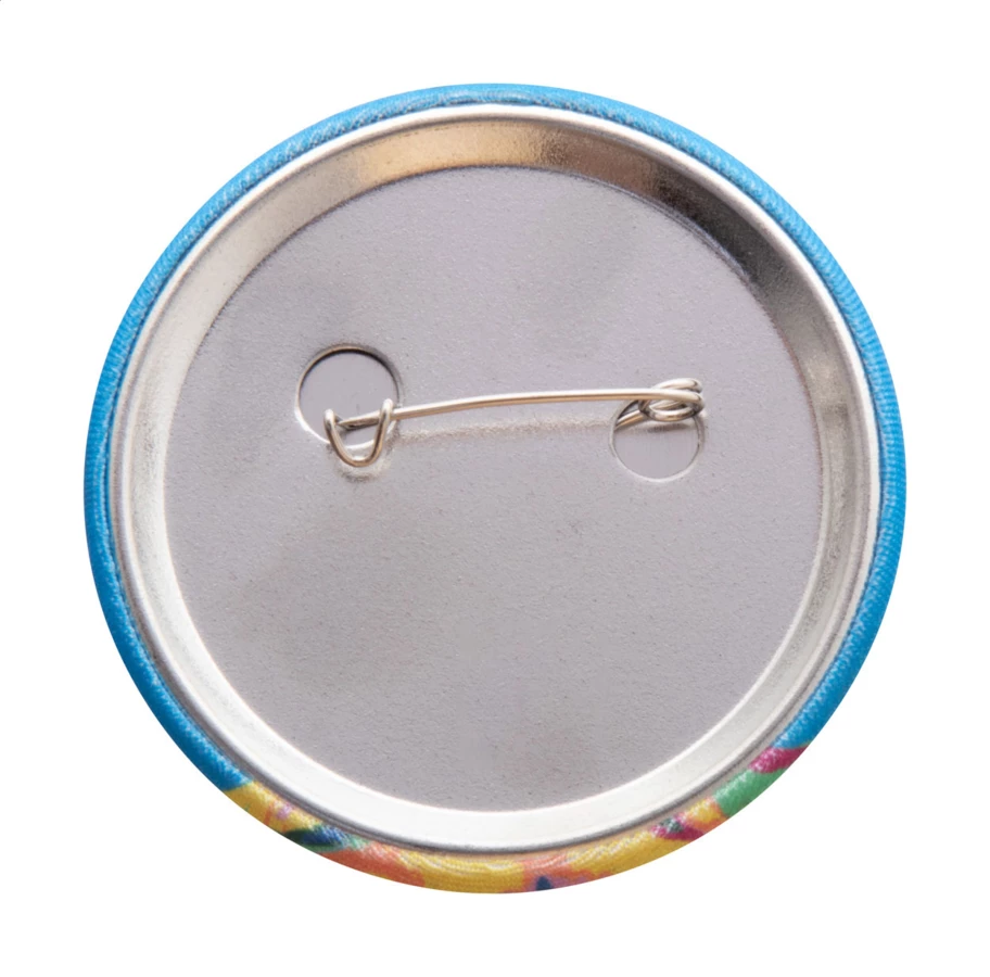 Duża przypinka / pins z personalizowaną wstawką z poliestru RPET z nadrukiem w full kolorze. Cena obejmuje nadruk sublimacyjny. Min. ilość: 100 szt.