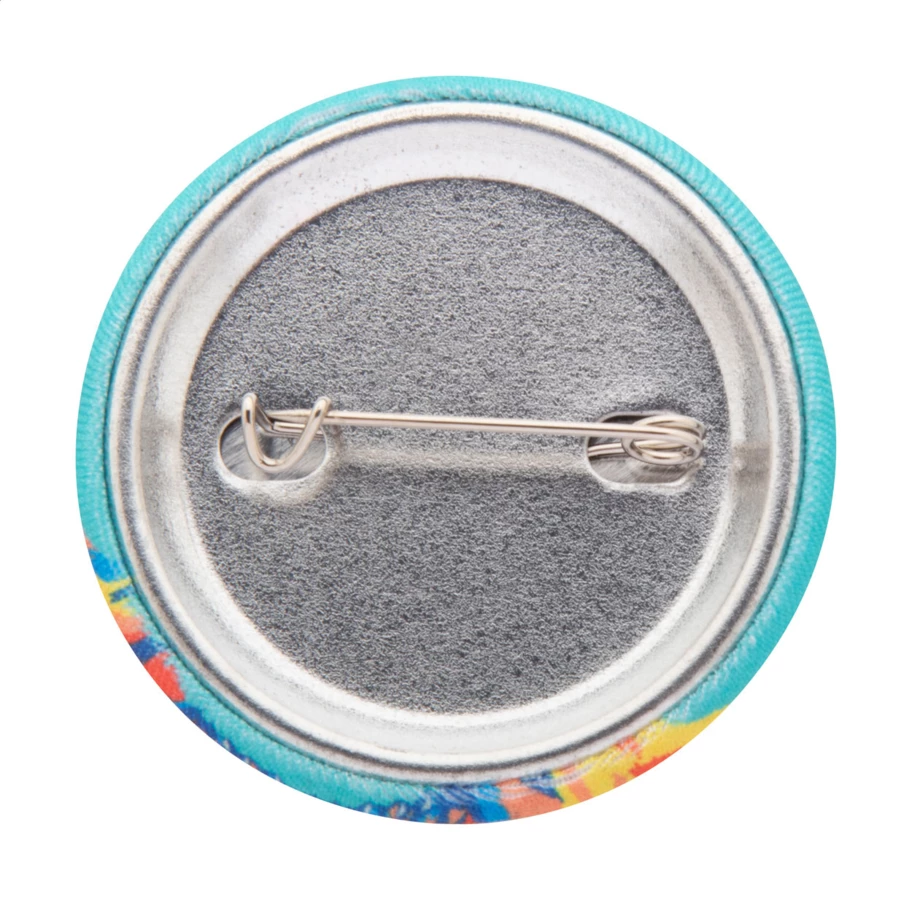 Mała przypinka / pins z personalizowaną wstawką z poliestru RPET z nadrukiem w full kolorze. Cena obejmuje nadruk sublimacyjny. Min. ilość: 100 szt.