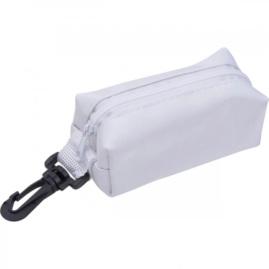 Piórnik poliestrowy z zamkiem błyskawicznym, plastikowym karabińczykiem i ośmioma różnokolorowymi kredkami.