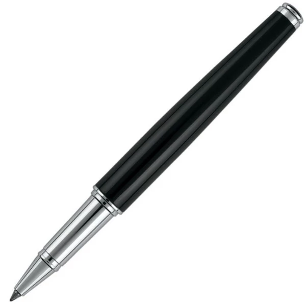 Pióro kulkowe z czarnym, lakierowanym korpusem i srebrnymi elementami. Wyposażone w wysokiej jakości niebieski wkład z końcówką 0,6 mm. W zestawie z wkładem zapasowym piszącym na czarno. Zapakowany w eleganckie pudełko prezentowe z certyfikatem autentyczności Pierre Cardin.
