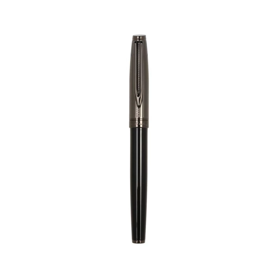 Ekskluzywne pióro wieczne Pierre Cardin o eleganckim i klasycznym designie. Korpus wykonany jest w błyszczącym czarnym kolorze z górną częścią w odcieniu gunmetal. Pióro wyposażone jest w standardowy nabój atramentowy w kolorze niebieskim, zapewniający płynne i precyzyjne pisanie. Doskonale leży w dłoni, łącząc styl z komfortem użytkowania. Całość zapakowana jest w eleganckie pudełko upominkowe z certyfikatem autentyczności.