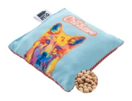 Wykonana na zamówienie poduszka termiczna z pestkami wiśni, pokryta mikrofibrą RPET. Kompaktowy rozmiar, idealny do uszu. Z nadrukowaną grafiką sublimacyjną na całej powierzchni i charakterystyczną metką RPET. Min. ilość: 50 szt.