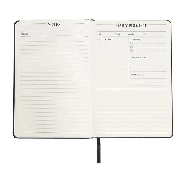 Planner, który doskonale umożliwia skuteczną organizację życia i czasu. Łączy w sobie elementy kalendarza, notatnika oraz organizera. Jego układ umożliwia planowanie zadań na każdy dzień, ale także sporządzanie list, tworzenie notatek oraz spisywanie pomysłów czy ważnych myśli. Posiada uchwyt na długopis, tasiemkę do zaznaczania stron oraz elastyczną gumkę do zamykania. 80 kartek o gramaturze 70 g/m2. Długopis nie jest dołączony. Na okładce tłoczony napis: "PLANNER".