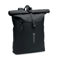 Plecak typu rolltop z poliestru 600D RPET z wyściełanymi plecami i wzmocnionym dnem. Przednia kieszeń zapinana na zamek błyskawiczny. Podszewka wykonana z poliestru 210D RPET.