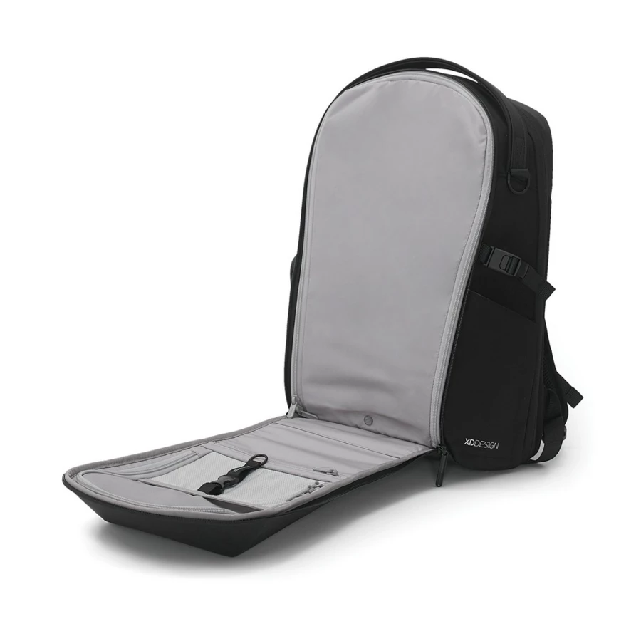 Plecak na laptopa do 16”, przegroda główna otwierana pod kątem 180 stopni, wewnątrz kieszenie z siatki, wiele kieszeni na zewnątrz, kieszeń na butelkę zamykana na magnes, kieszeń z odpinaną smyczą na klucze, wodoodporny, wykonany z materiałów pochodzących z recyklingu, posiada wbudowany znacznik AWARE™, który potwierdza wykorzystanie materiałów z recyklingu, ślad węglowy produktu: 8,03 kg CO2