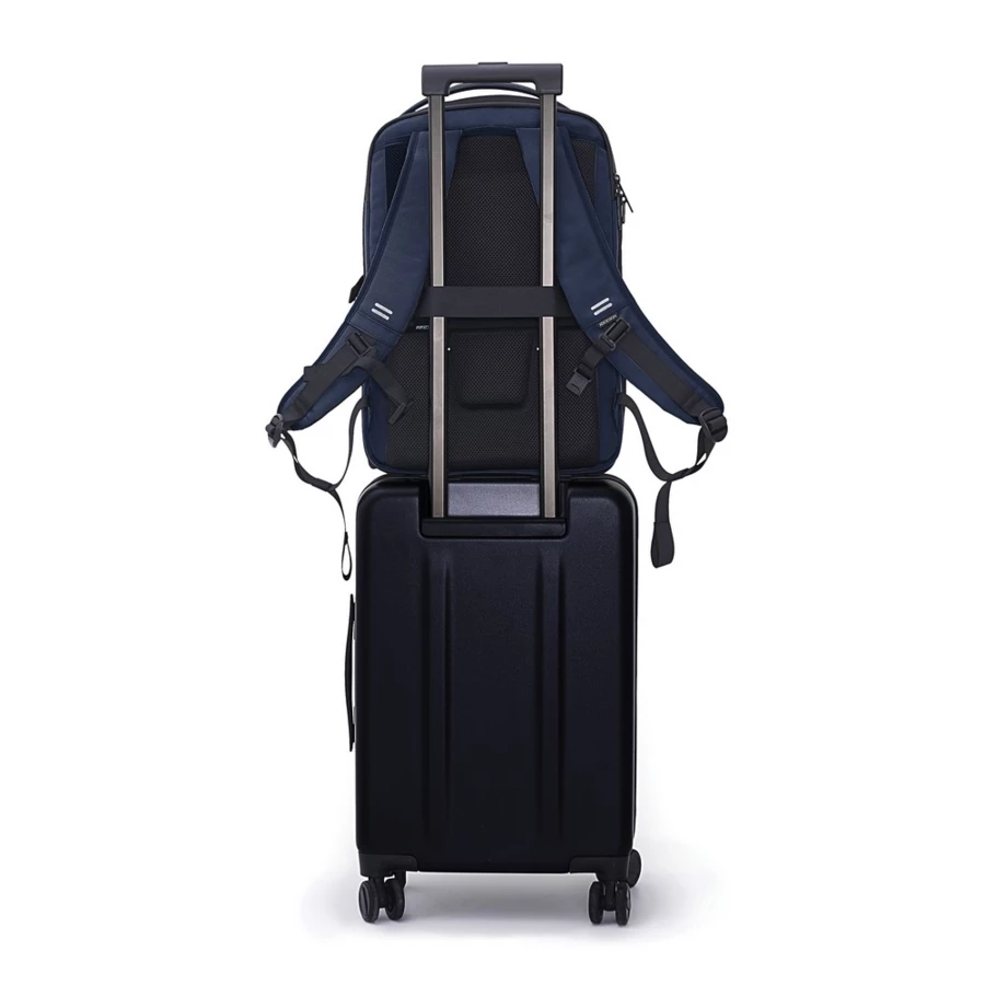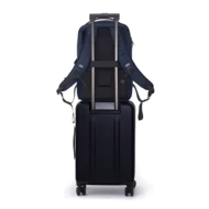 Plecak na laptopa do 16”, przegroda główna otwierana pod kątem 180 stopni, wewnątrz kieszenie z siatki, wiele kieszeni na zewnątrz, kieszeń na butelkę zamykana na magnes, kieszeń z odpinaną smyczą na klucze, wodoodporny, wykonany z materiałów pochodzących z recyklingu, posiada wbudowany znacznik AWARE™, który potwierdza wykorzystanie materiałów z recyklingu, ślad węglowy produktu: 8,03 kg CO2