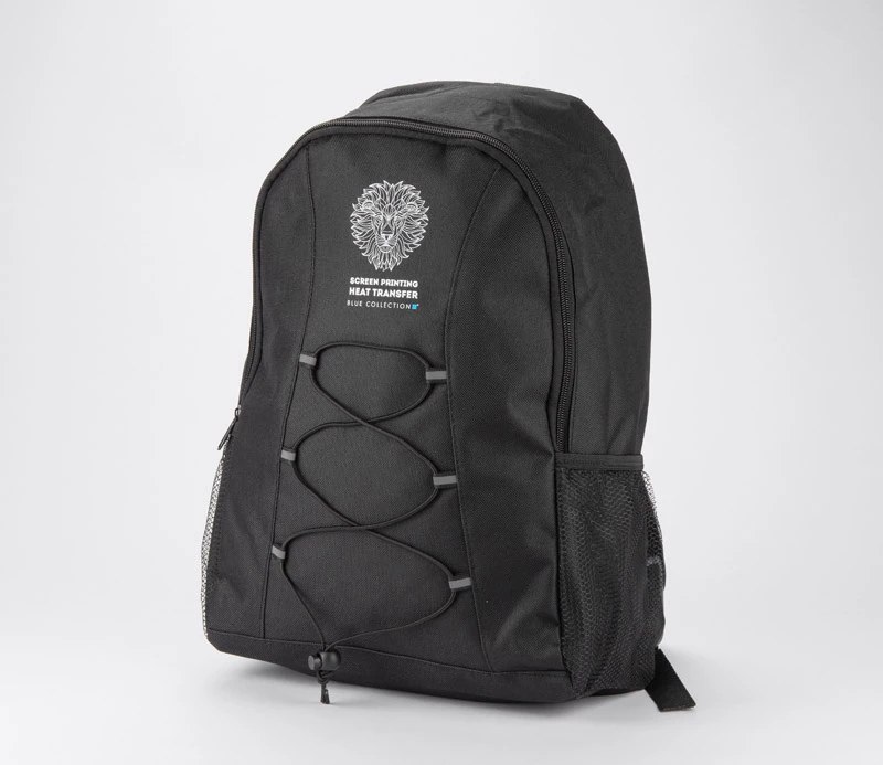 Plecak KAPIRO wykonany z poliestru 600D. Posiada jedną komorę główną zamykaną na zamek oraz dwie siateczkowe kieszonki boczne. Czarne gumki pełnią praktyczny element podróży – można wykorzystać to miejsce do zapakowania małego kocyka lub lekkiej kurtki.