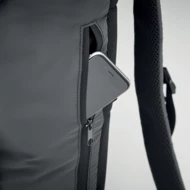Plecak outdoorowy z poliestru 190T pokrytego odblaskowymi granulkami. Boczna kieszeń zewnętrzna zapinana na zamek i wyściełane plecy, wewnętrzna podszewka z zapięciem na sznurek. Jedna duża wyściełana wewnętrzna przegroda na laptopa. Posiada regulowane wyściełane szelki oraz regulowany pas piersiowy i biodrowy z zapięciem na klamrę. Wodoodporny.
