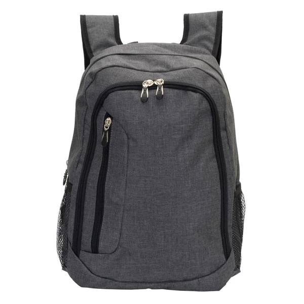 Dwukomorowy plecak miejski. Wykonany z wytrzymałej tkaniny o splocie oxford, 100% poliester powlekanej PVC. Wyposażony w tradycyjne zamki. Dodatkowo posiada 1 kieszeń z przodu oraz 2 boczne, wykonane z siateczki. Na szelkach naszyte są paski z odblaskowego materiału. Pojemność 20 litrów.