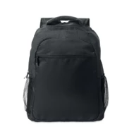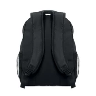 Plecak na laptopa 15 cali z poliestru 600D RPET z wyściełaną przegrodą na laptopa wewnątrz, kieszeniami z siatki po obu stronach i przednią kieszenią zapinaną na zamek.
