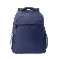 Plecak na laptopa 15 cali z poliestru 600D RPET z wyściełaną przegrodą na laptopa wewnątrz, kieszeniami z siatki po obu stronach i przednią kieszenią zapinaną na zamek.