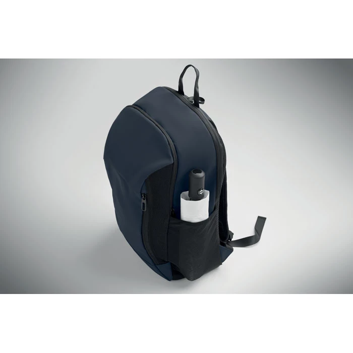 Plecak na laptopa 15 cali z miękkiego PU z wyściełanym tyłem i ukrytą komorą główną zapinaną na zamek. 1 przednia kieszeń zapinana na zamek, 2 przednie boczne kieszenie zapinane na zamek i 2 boczne kieszenie z elastycznej siatki. Podszewka z RPET 210D.