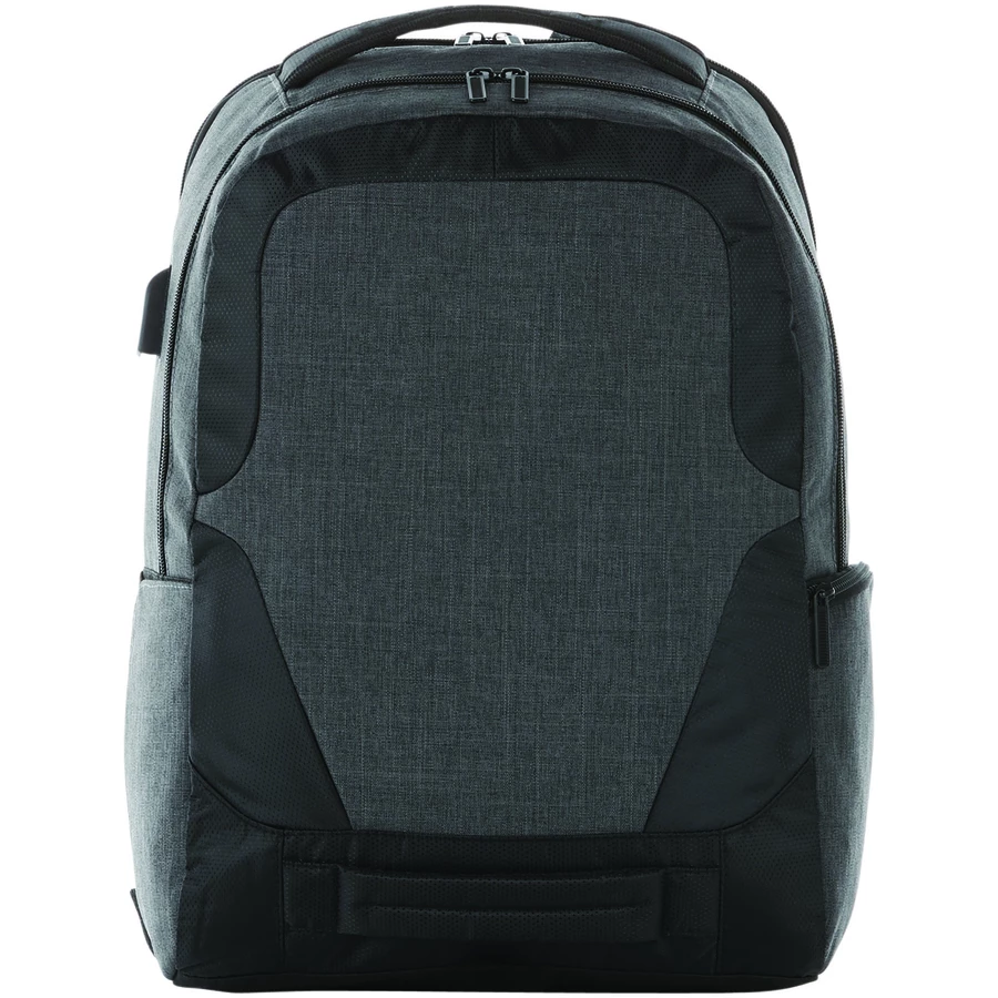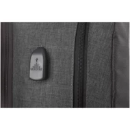 Elegancki plecak na laptop 17" z portem USB i przewodem. Wyposażony w zabezpieczenie RFID w bocznej kieszeni i dodatkowe kieszenie zapinane na zamek. Wyściełane uchwyty z góry i z przodu oraz szelki sprawiają, że wygodnie się go nosi. Ze względu na rodzaj barwników tkanin, splotów i nadruków mogą występować niewielkie różnice w kolorze rzeczywistego produktu.