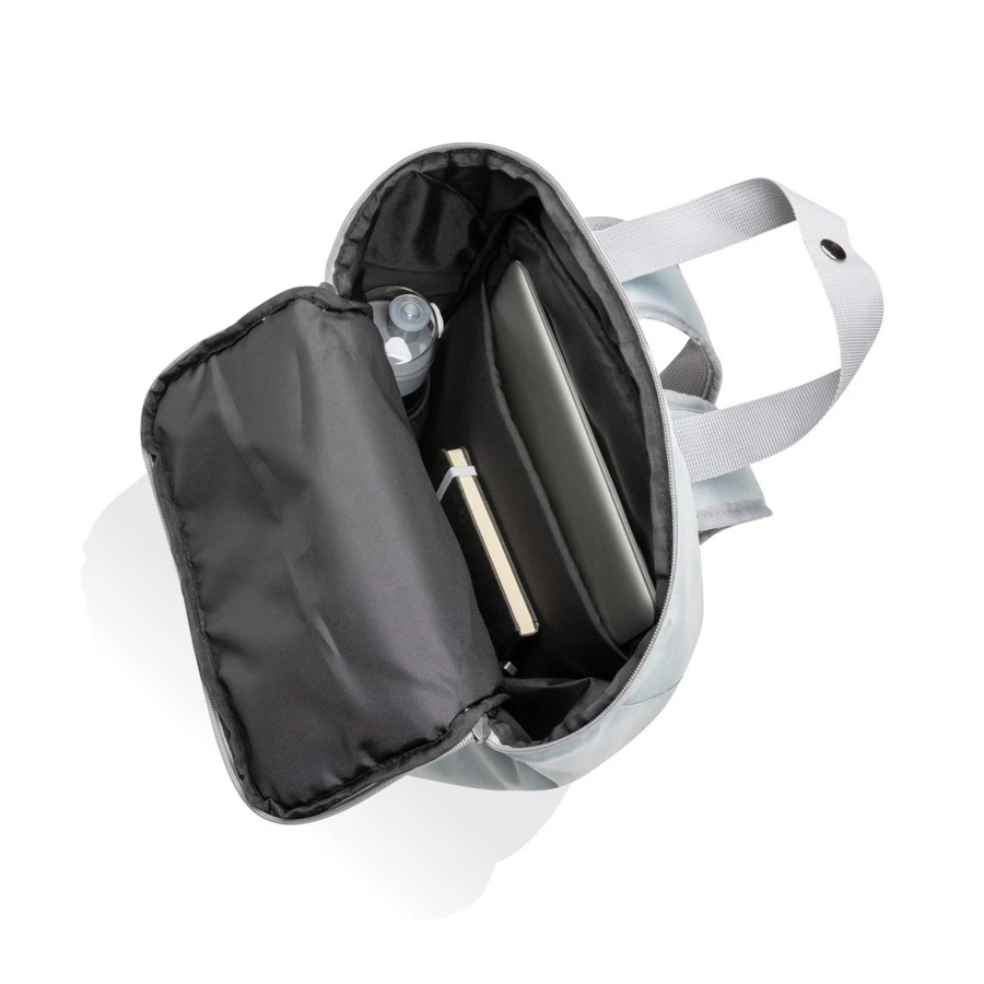 Plecak na laptopa 14”, wykonany z poliestru z recyklingu, posiada znacznik AWARE™, który gwarantuje, że wykorzystane materiały pochodzą z recyklingu, 2% wpływów z każdego sprzedanego produktu z kolekcji Impact jest przekazywane na rzecz Water.org, ślad węglowy produktu: 3,15 kg CO2