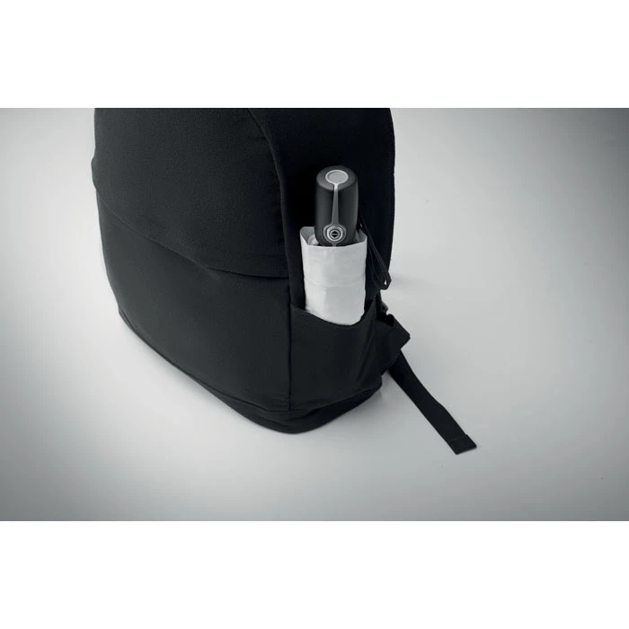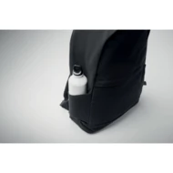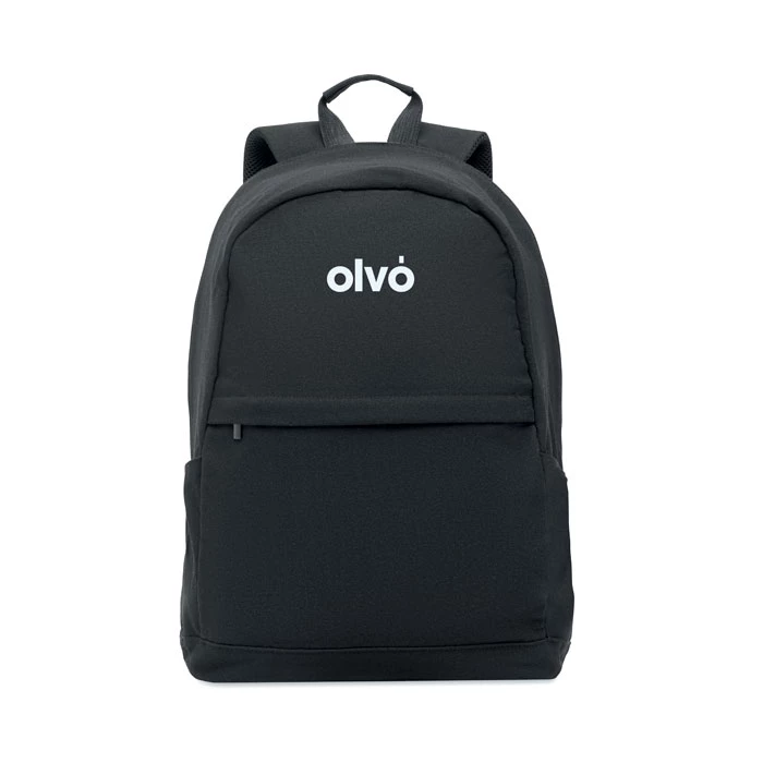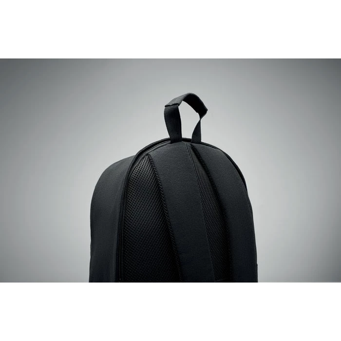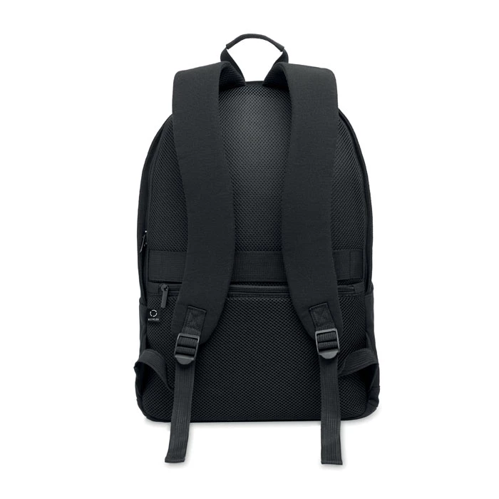 15-calowy plecak na laptopa wykonany z bawełny z recyklingu i poliestru z recyklingu (70%/30%). Posiada przednią kieszeń zapinaną na suwak, kieszeń zapinaną na suwak z tyłu. Miękko wyściełane plecy i szelki oraz pasek na walizkę.