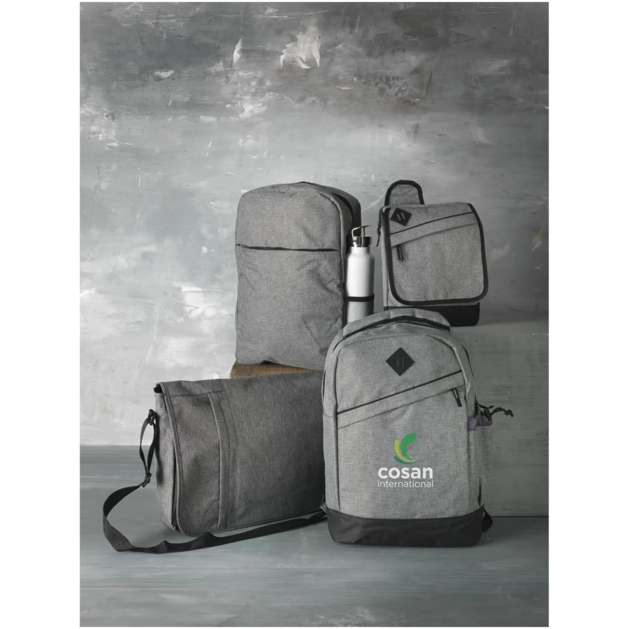 Posiada dużą główną komorę zamykaną na zamek błyskawiczny z pokrowcem na 15” laptopa i przednią komorę zamykaną na zamek błyskawiczny, umożliwiającą szybki dostęp do urządzeń przenośnych. W zestawie wyściełane paski na ramię, uchwyt do transportu i siatkowa kieszeń na butelkę z wodą. Ze względu na rodzaj barwników tkanin, splotów i nadruków mogą występować niewielkie różnice w kolorze rzeczywistego produktu. Pojemność: 18 L.