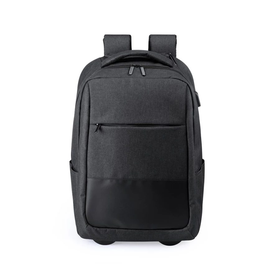 Plecak na kółkach, miękka przegroda na laptopa 15" i tablet 10", gniazdo USB do ładowania telefonów (power-bank nie dołączony), miękki tył i paski na ramię