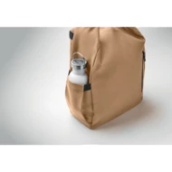 15-calowy plecak na laptopa wykonany z poliestru 600D RPET z wyściełaną podszewką 210D RPET. Posiada przednią kieszeń zapinaną na zamek, elastyczną kieszeń boczną i regulowane paski na ramiona.