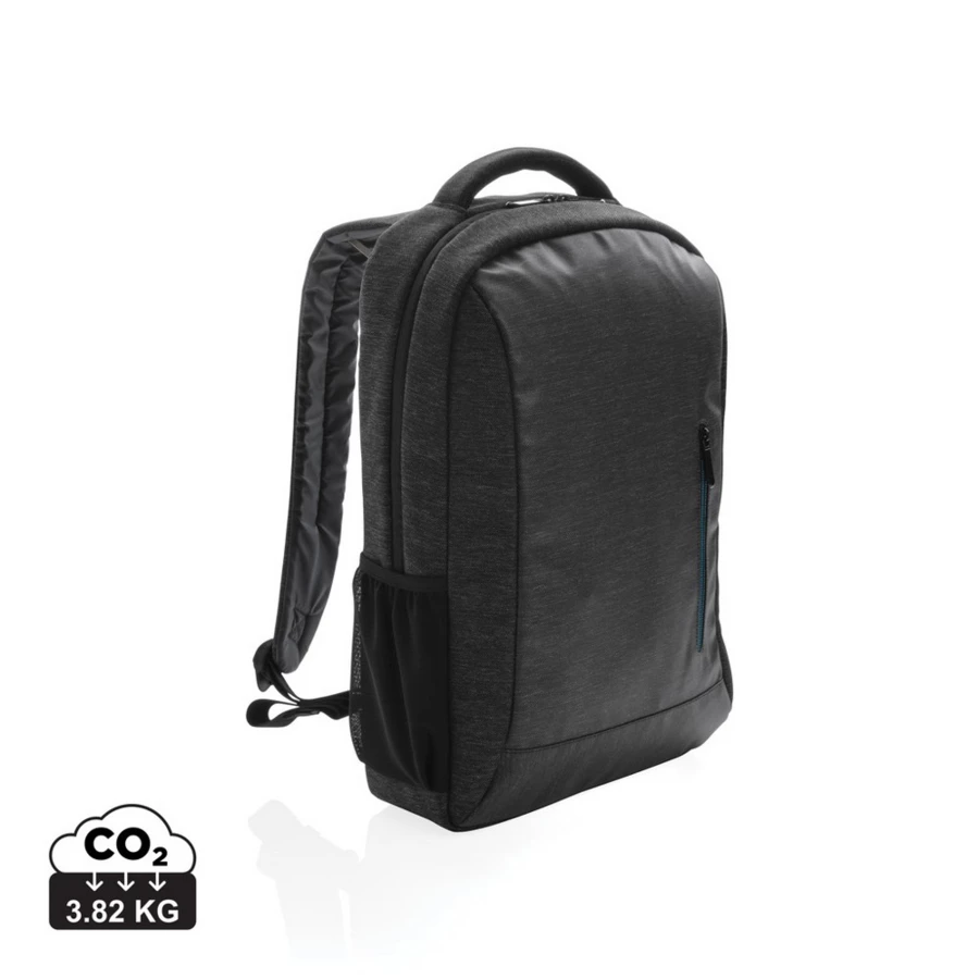 Plecak z miękką przegrodą na laptopa 15,6", wykonany z wytrzymałego poliestru 900D, przestronna przegroda główna, przednia kieszeń na zamek, dopasowane paski zwiększają komfort noszenia, posiada pasek do zamocowania na walizce, nie zawiera PVC, ślad węglowy produktu: 3,82 kg CO2