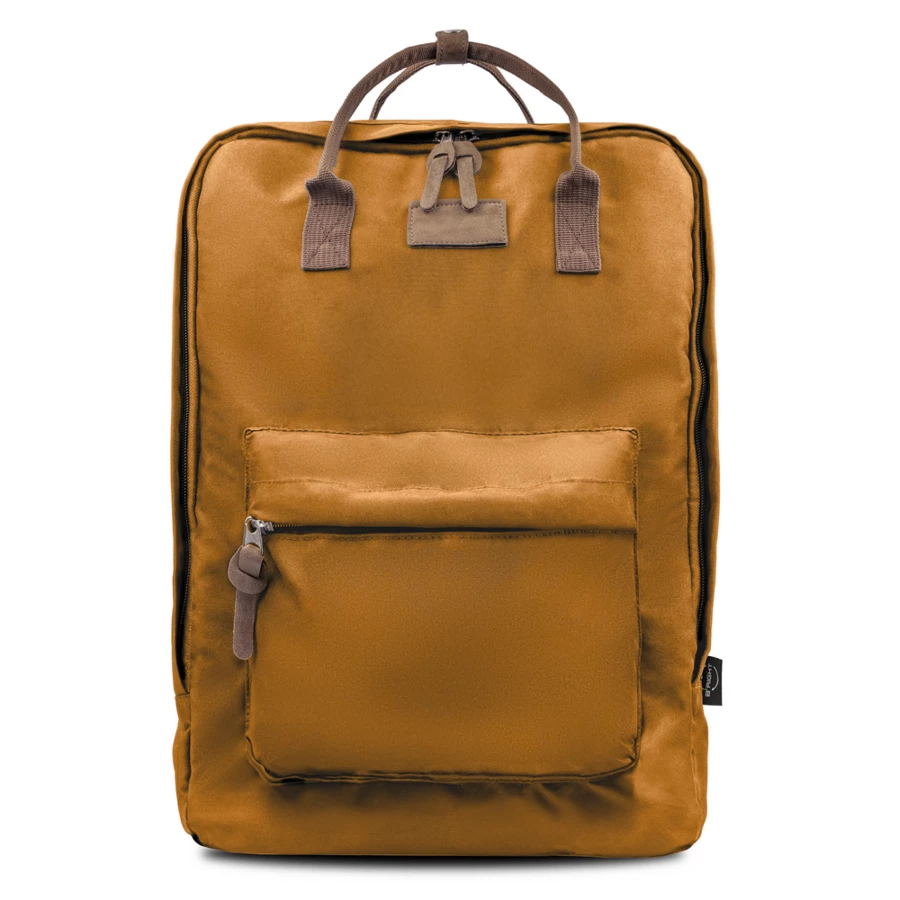 Plecak B'RIGHT na laptopa 15,6", posiada 2 przegrody główne na zamek błyskawiczny, przednia przegroda główna z różnymi kieszonkami w środku w tym 1 boczną, tylna przegroda główna z kieszenią na laptopa, wnętrze przegród głównych wykończone podszewką w kolorze uchwytów, 1 kieszeń przednia na zamek błyskawiczny, 2 uchwyty z możliwością złączenia paskiem na napę, miękki tył zwiększający komfort użytkowania i regulowane paski na ramię umożliwiające dopasowanie ich długości do własnych preferencji, produkt wykonany z RPET, zgodny z certyfikatem GRS (Global RecycIed Standard)
