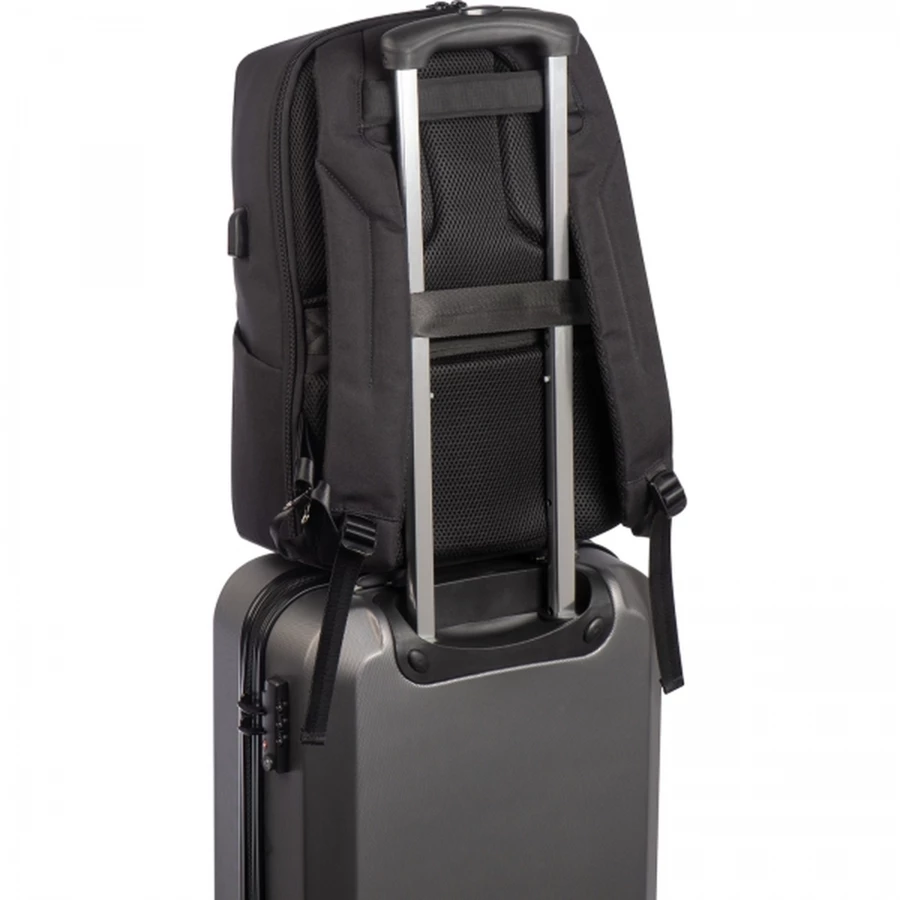 Wysokiej jakości, wodoodporny plecak, wykonany w 65% z nylonu i w 35% z poliuretanu. Posiada port USB oraz wzmacniane, oddychające szelki. Plecak jest bardzo pojemny, ma także miejsce na laptopa do 15,6`.