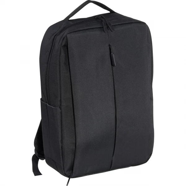Plecak na laptop wykonany z poliestru na laptopy 15-calowe. Ma dwie przednie przegródki z zamkami błyskawicznymi, duży główny przedział z wyściółką na laptop, różne kieszenie wsuwane, wyściełane paski na ramiona, uchwyt do noszenia i pasek do mocowania do walizki.