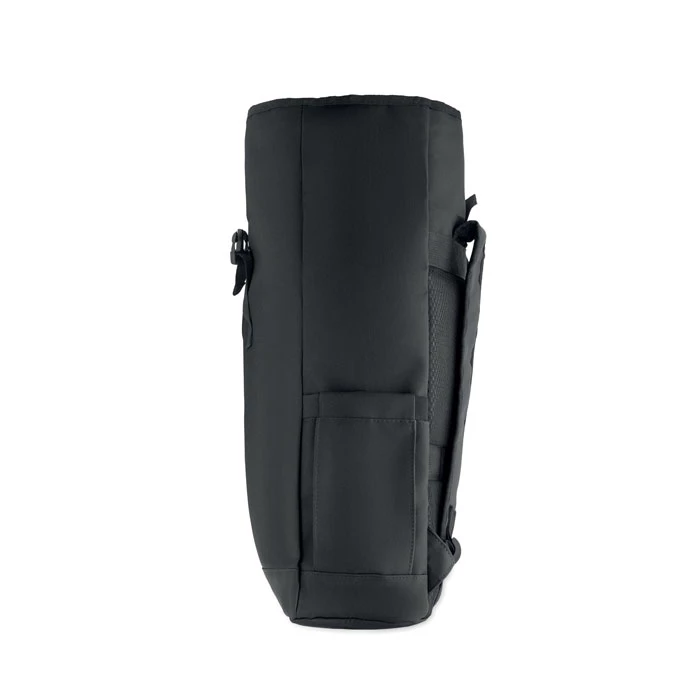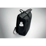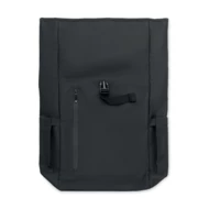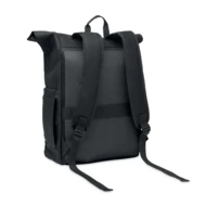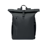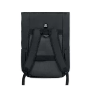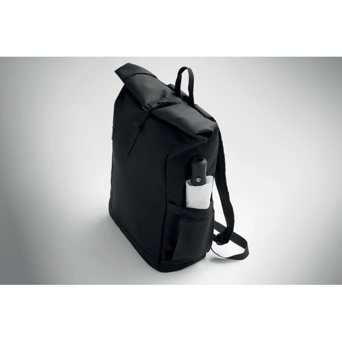 Plecak na laptop typu rolltop z powlekanego PU poliestru 600D RPET i podszewką z poliestru RPET. Wyściełane plecy z kieszenią na zamek i paskiem na walizkę. Wyściełany pasek na ramię z wewnętrznym wykończeniem z siatki.