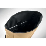 Plecak na laptop typu rolltop z powlekanego PU poliestru 600D RPET i podszewką z poliestru RPET. Wyściełane plecy z kieszenią na zamek i paskiem na walizkę. Wyściełany pasek na ramię z wewnętrznym wykończeniem z siatki.