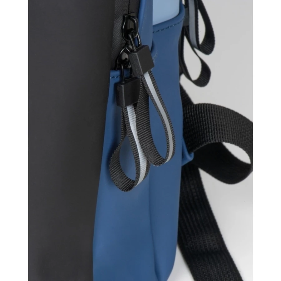 Wodoodporny plecak wykonany z PU, z watowanymi, regulowanymi szelkami, uchwytem do noszenia, przegrodą na laptopa, różnymi małymi przegródkami, odblaskowymi uchwytami zamków błyskawicznych i zapięciem magnetycznym.