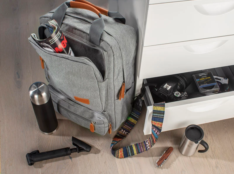 Jednokomorowy plecak PAKKU to odpowiedni wybór zarówno dla kobiet, jak i dla mężczyzn. Szarość czyni go uniwersalnym, a jasnobrązowe elementy z ekoskóry stanowią ciekawy kontrast. Dzięki pięciu kieszeniom wewnętrznym i sześciu zewnętrznym – czterem zapinanym na zamek i dwóm bocznym – PAKKU jest bardzo pojemny. Dodatkowo posiada dwie wzmocnione ekoskórą rączki ułatwiające trzymanie. Plecak jest wykonany z poliestru 600D.