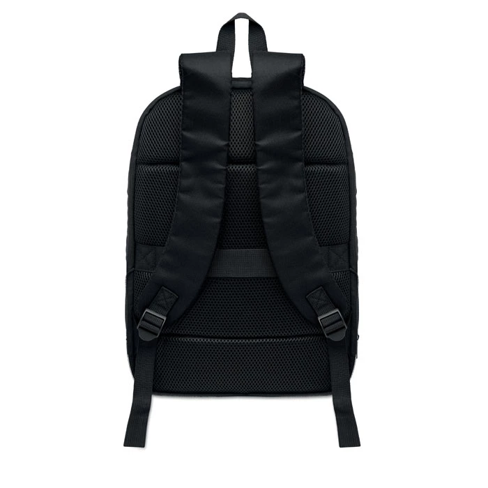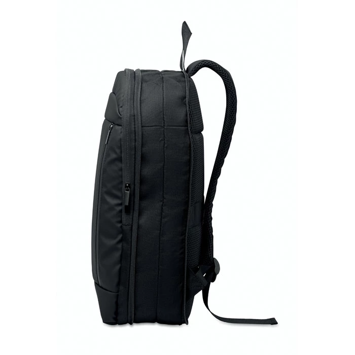 Rozszerzany plecak komputerowy 16'' z poliestru 600D RPET z powłoką PU z przodu i podszewką z poliestru RPET. Ukryta kieszeń zapinana na zamek i wyściełana przegroda na laptopa, przednia przegroda, siatkowy tył i pasek na walizkę.