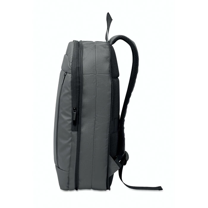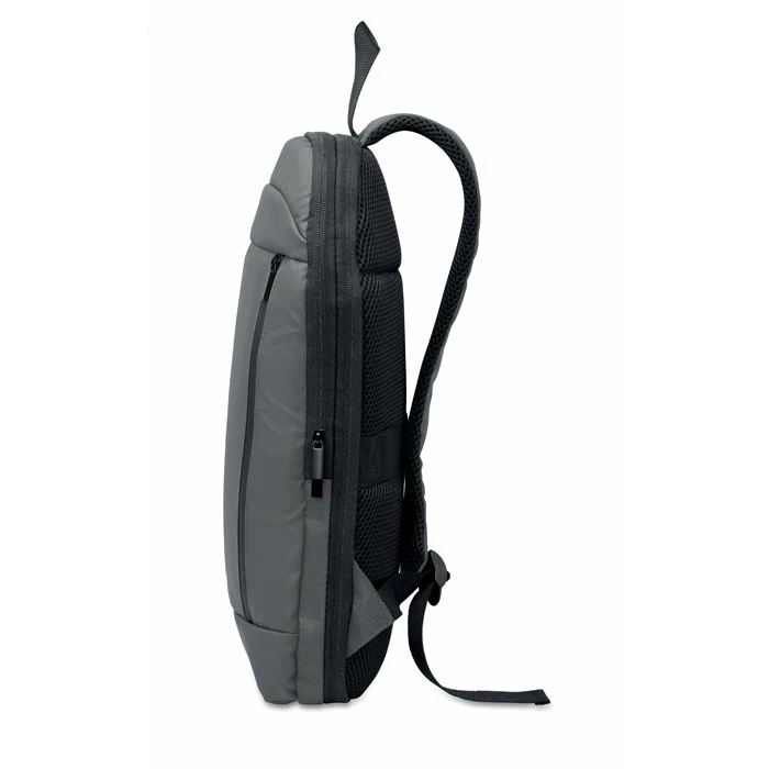Rozszerzany plecak komputerowy 16'' z poliestru 600D RPET z powłoką PU z przodu i podszewką z poliestru RPET. Ukryta kieszeń zapinana na zamek i wyściełana przegroda na laptopa, przednia przegroda, siatkowy tył i pasek na walizkę.