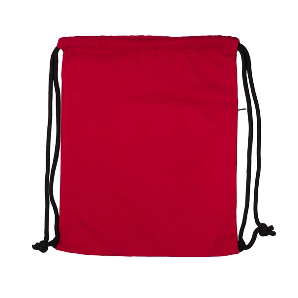Pojemny plecak ze ściągaczem, wykonany z trwałego materiału RPET 300D. Wyposażony w praktyczną boczną kieszeń zapinaną na zamek.