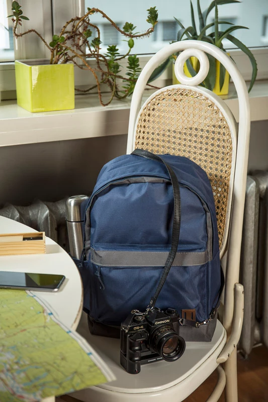 Plecak ENVI wykonany jest z poliestru 600D RPET, co czyni go bardziej przyjaznym środowisku. Posiada jedną komorę główną zapinaną dwoma suwakami. Dno plecaka oraz plecy są lekko usztywnione. Z przodu znajduje się spora kieszeń zapinana na zamek, która pomieści potrzebne drobiazgi. Z boku znajduje się otwarta kieszonka mieszcząca małą butelkę wody.