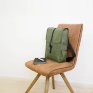 Plecak z klapą wykonany z RPET, dwie kieszenie boczne, przestronna przegroda główna, zamykany na klamrę