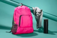 Funkcjonalny plecak, który można złożyć do niewielkich rozmiarów. Posiada jedną wewnętrzną kieszeń oraz trzy zewnętrzne - jedną zapinaną na zamek oraz dwie siateczkowe. Plecak wykonany z poliestru.