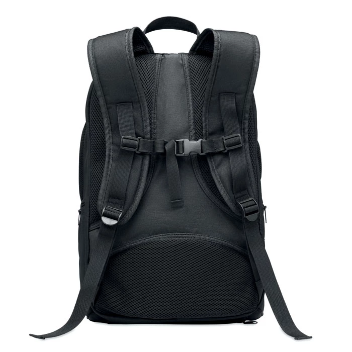 Wielofunkcyjny plecak sportowy 600D RPET z kilkoma przegrodami (w tym wyściełana przegroda na rakietkę do padla). Posiada regulowany pasek na ramię.