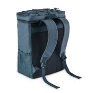 Plecak chłodzący z poliestru 600D RPET z wyściełanymi regulowanymi paskami na ramiona, podszewką PEVA i pianką PE o grubości 5 mm. Ma przednią kieszeń i dwie boczne kieszenie z siatki. Pojemność: 9 l.